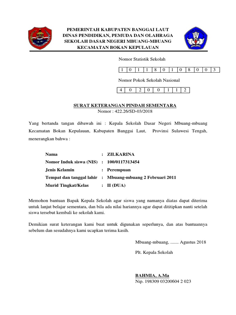 Ada surat untuk izin tidak masuk sekolah, absen dari kuliah, berhalangan sd negeri 75 jakarta selatan.